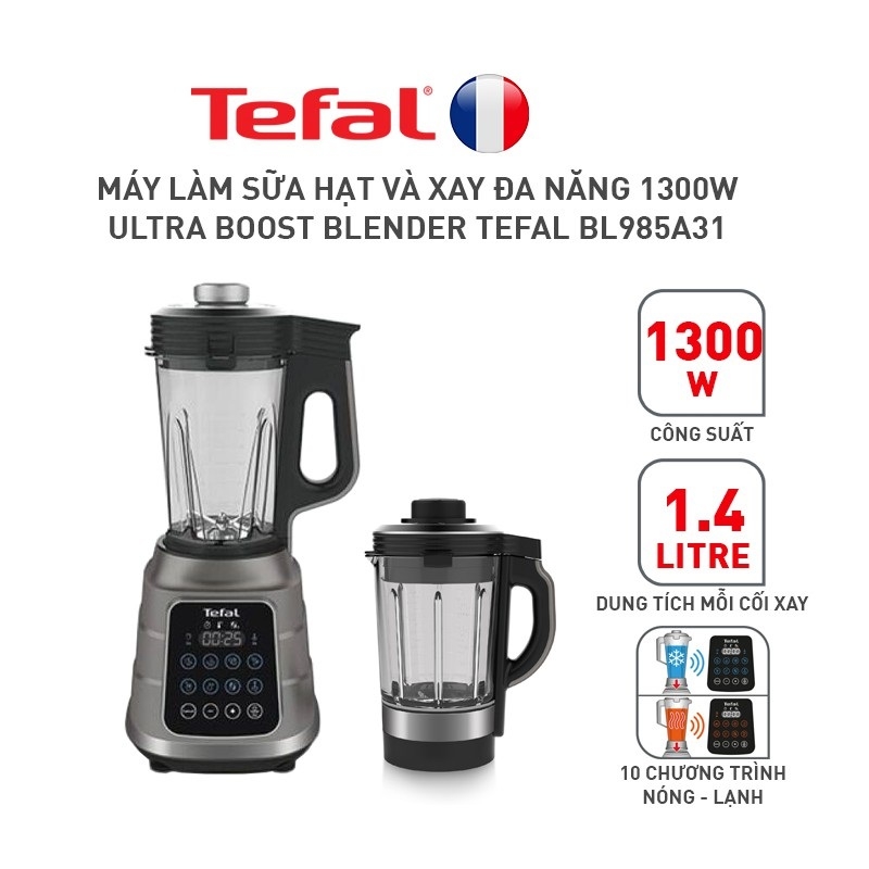 Máy làm sữa hạt sinh tố Tefal BL985A31 bao gồm 2 cối xay: 1 cối lớn thủy tinh dung tích 1.4L và 1 cối bằng nhựa Tritan dung tích 1.4L. Chất liệu này giúp máy có kiểu dáng sang trọng có độ bền và tuổi thọ cao hơn, chất liệu cối xoay cũng đảm bảo tốt hơn cho sức khỏe người dùng.