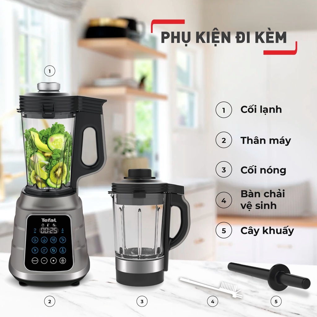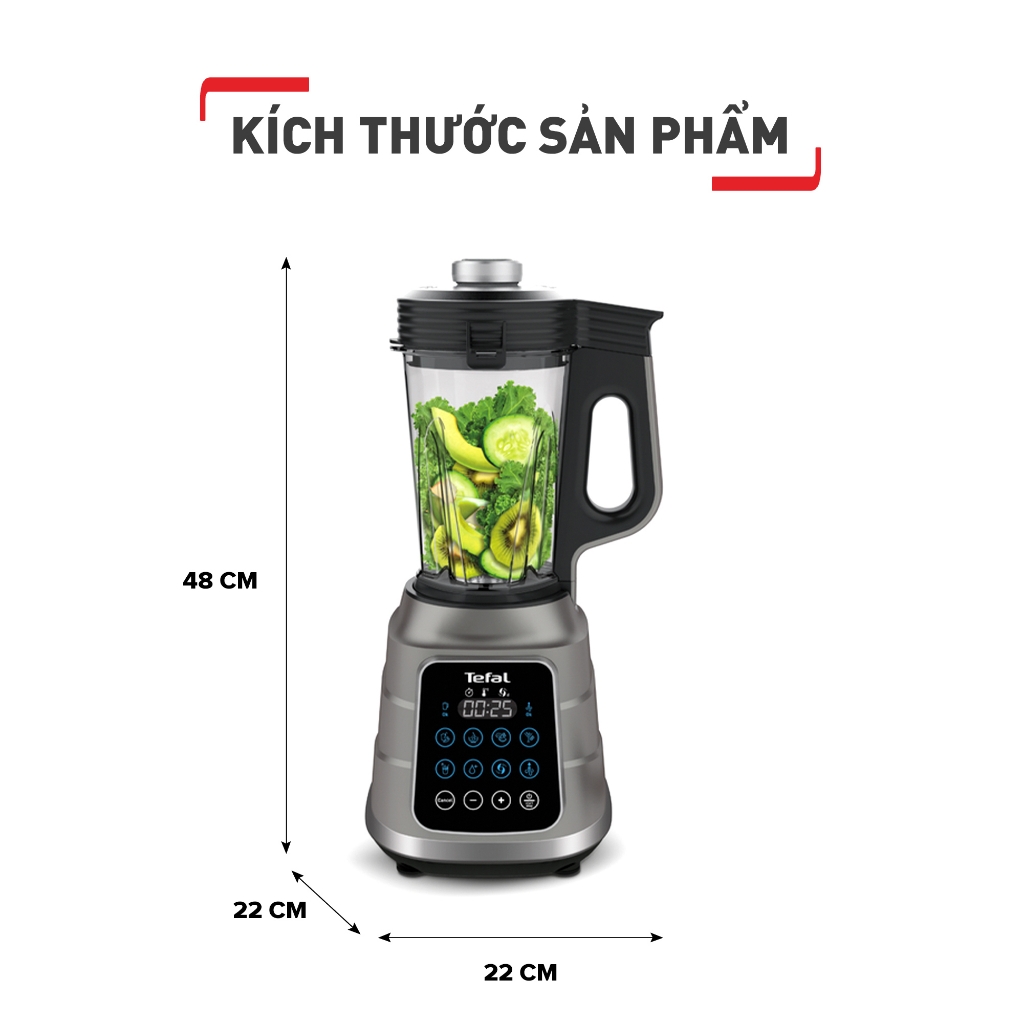 Máy xay sinh tố Tefal sở hữu kiểu dáng nhỏ gọn, đường nét bắt mắt cùng tông màu chủ đạo là đen - bạc sẽ đem đến sự hiện đại cho không gian bếp của bạn