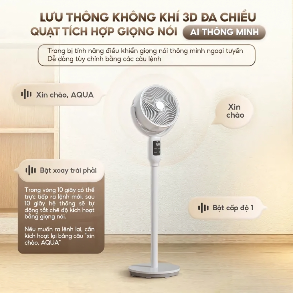 Quạt đứng AI lưu thông không khí AQUA ED1823T(W) - điều khiển giọng nói, hẹn giờ 12 tiếng - Bảo hành chính hãng