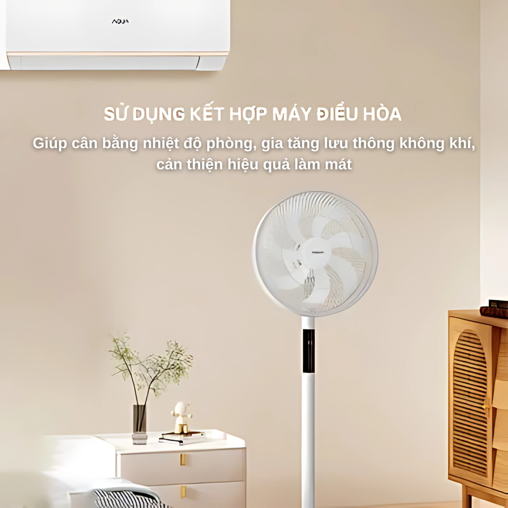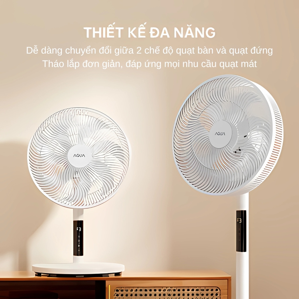 Quạt AQUA AQS-FED3502R(W)-VN không chỉ là một chiếc quạt đứng thông thường, mà với thiết kế đa năng, bạn có thể dễ dàng chuyển đổi giữa chế độ quạt đứng và quạt bàn chỉ với vài thao tác tháo lắp đơn giản. Điều này giúp bạn linh hoạt sử dụng quạt ở nhiều vị trí khác nhau, từ bàn làm việc đến giường ngủ, đáp ứng mọi nhu cầu làm mát.