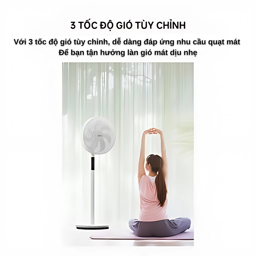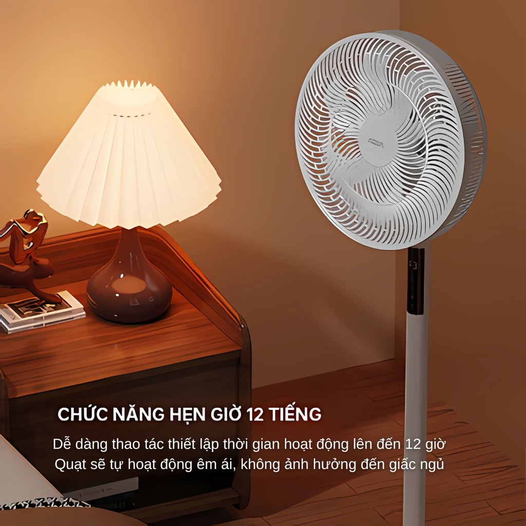 Quạt có ba mức độ gió (thấp, trung bình, cao) có khả năng xoay trái phải, gập điều hướng lên xuống, cho phép bạn tùy chỉnh theo nhu cầu sử dụng, tạo điều kiện cho không khí lưu thông khắp phòng, mang luồng gió mát tự nhiên vào ngôi nhà của bạn. Cùng với chức năng hẹn giờ lên đến 12 tiếng giúp bạn chủ động hơn trong việc điều chỉnh thời gian.