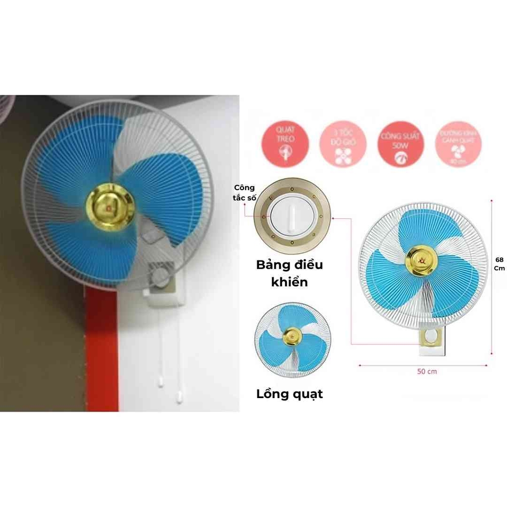 - 3 tốc độ gió linh hoạt: Tích hợp 3 mức gió (mạnh, trung bình, nhẹ), dễ dàng điều chỉnh bằng công tắc xoay hoặc dây kéo, đáp ứng mọi nhu cầu sử dụng.